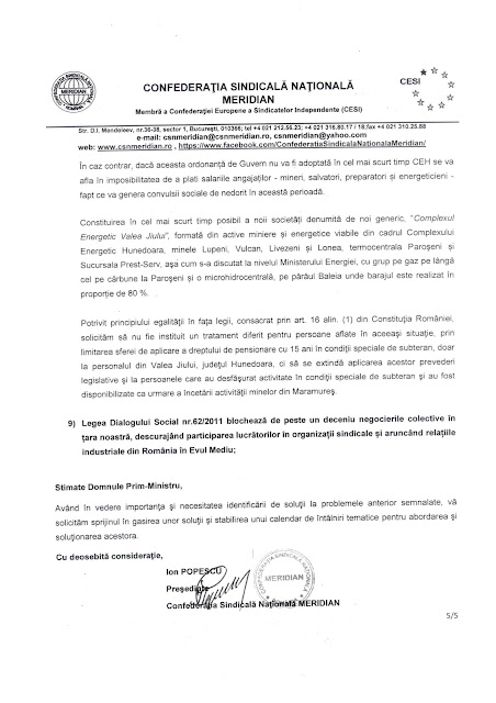 Revendicarile SCMD inaintate premierului Romaniei