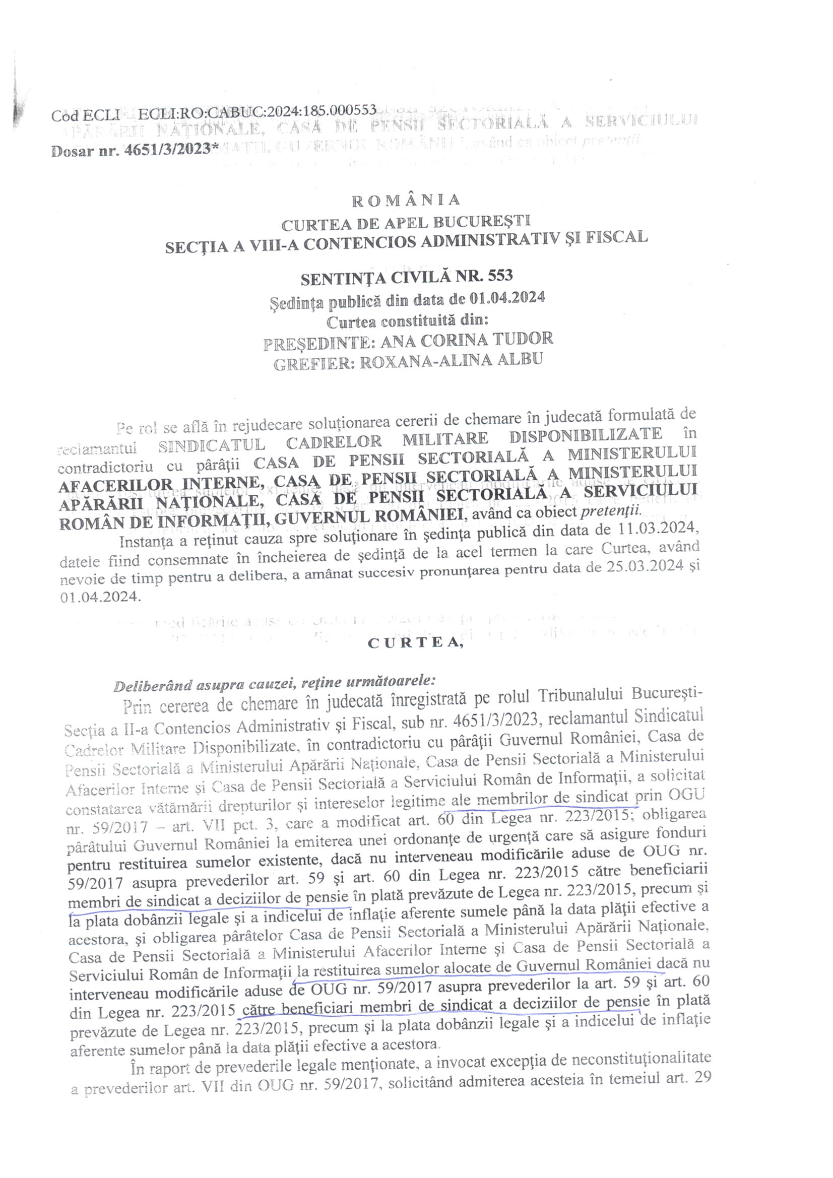 textului ramas, solicitand calcularea noului cuantum al pensiilor in 30 de zile